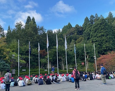 所内でも秋の気配がただよってきました。 緑色の葉から黄・赤色へと移り変わっています。 朝晩で冷え込みますが、子どもたちは寒暖差に負けずに活動しています。