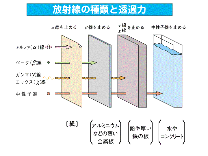 そもそも放射線とは何なのかということですが、放射線にはいろいろな種類があります。比較的知られているのがアルファ線、ベータ線、ガンマ線、エックス線などです。陽子線、中性子ほかにもあります。簡単に言えば粒子や電磁波などがエネルギーをもって飛んでいる状態と理解しても間違いではないと思います。逆にエネルギーを失って飛ばなくなったらもはや放射線ではなくなってしまっています。放射線がどこかに溜まってしまったという現象が起こらないのもこうした性質から明らかです。一般的に放射線といわれているものは「電離放射線」のことで物質をプラスとマイナスに電離するエネルギーを備えているものをいいます。