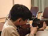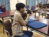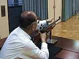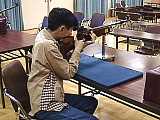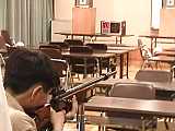 スイミングスクールも卒業となり、それに代るスポーツプログラムをとおもい、障害者スポーツセンターにでかけました。まず、プールに入り、そして、ひょっとしたら、向いているのでは、とおもっていたビームライフルを体験させて貰いました。視力は、一応2.0ということですので、やり方がわかれば、やれるかもと。結果は、予想以上に集中し、銃の操作も無難にこなしていました。