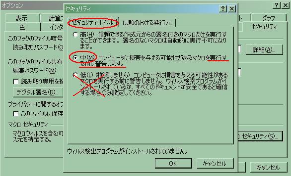 という,マクロセキュリティーの問題が考えられます。