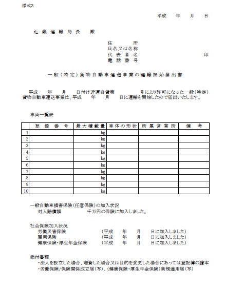 ・運輸開始届出書提出