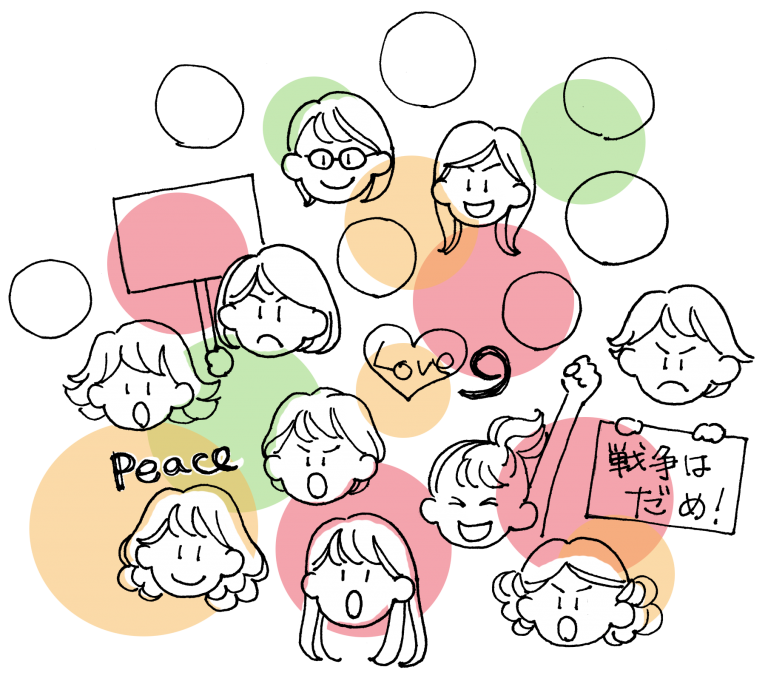 京都府内各地の新日本婦人の会では、平和、ジェンダー、子育てや教育、環境、食の安全、いのち・くらしなどなど、身近なことから日本全体、さらに世界へとつながることまで、一人ひとりの願いや思いに寄り添ったとりくみをしています。