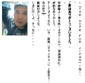 辺は最後、「日本の将来?そんなもん中国人の俺が知るか?日本人が決めることだ。」と言わせようと思った。