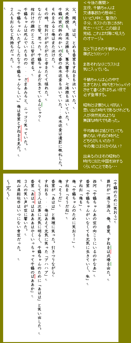 これは、最終章、自分の作り出したキャラでお祭りをするというのが主旨である。